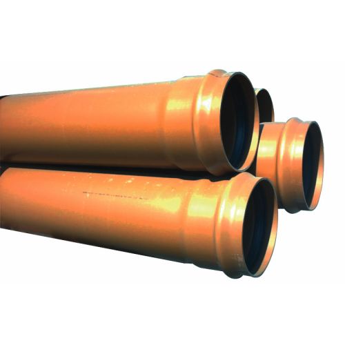Tubería de PVC compacto para saneamiento enterrado con presión, de color naranja teja (RAL 8023).
